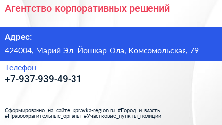 Агентство корпоративных решений по адресу 424004, Марий Эл, Йошкар-Ола, Комсомольская, 79 в дальнейшем Организация, размещена в следующих категориях: