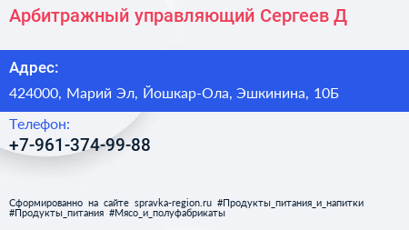 Арбитражный управляющий Сергеев Д. по адресу 424000, Марий Эл, Йошкар-Ола, Эшкинина, 10Б в дальнейшем Организация, размещена в следующих категориях: