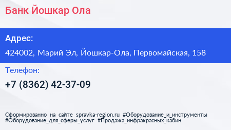 Банк Йошкар-Ола по адресу 424002, Марий Эл, Йошкар-Ола, Первомайская, 158 в дальнейшем Организация, размещена в следующих категориях: