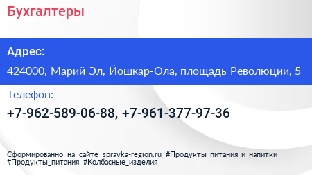 Бухгалтеры по адресу 424000, Марий Эл, Йошкар-Ола, площадь Революции, 5 в дальнейшем Организация, размещена в следующих категориях: