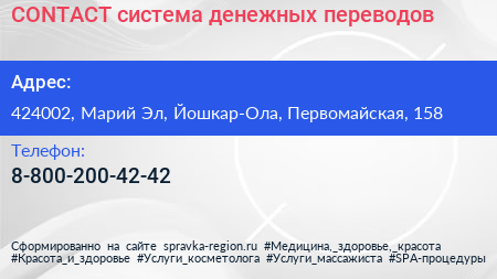 CONTACT, система денежных переводов по адресу 424002, Марий Эл, Йошкар-Ола, Первомайская, 158 в дальнейшем Организация, размещена в следующих категориях:
