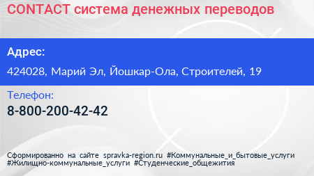 CONTACT, система денежных переводов по адресу 424028, Марий Эл, Йошкар-Ола, Строителей, 19 в дальнейшем Организация, размещена в следующих категориях:
