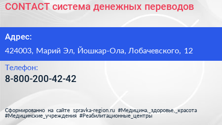 CONTACT, система денежных переводов по адресу 424003, Марий Эл, Йошкар-Ола, Лобачевского, 12 в дальнейшем Организация, размещена в следующих категориях: