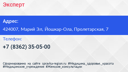 Эксперт по адресу 424007, Марий Эл, Йошкар-Ола, Пролетарская, 7 в дальнейшем Организация, размещена в следующих категориях: