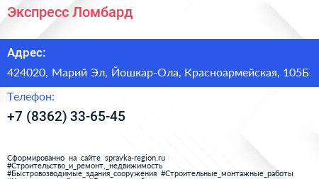 Экспресс Ломбард по адресу 424020, Марий Эл, Йошкар-Ола, Красноармейская, 105Б в дальнейшем Организация, размещена в следующих категориях: