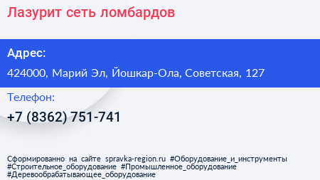 Лазурит, сеть ломбардов по адресу 424000, Марий Эл, Йошкар-Ола, Советская, 127 в дальнейшем Организация, размещена в следующих категориях: