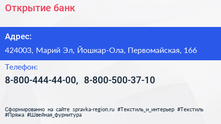 Открытие, банк по адресу 424003, Марий Эл, Йошкар-Ола, Первомайская, 166 в дальнейшем Организация, размещена в следующих категориях: