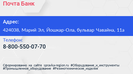 Почта Банк по адресу 424038, Марий Эл, Йошкар-Ола, бульвар Чавайна, 11а в дальнейшем Организация, размещена в следующих категориях: