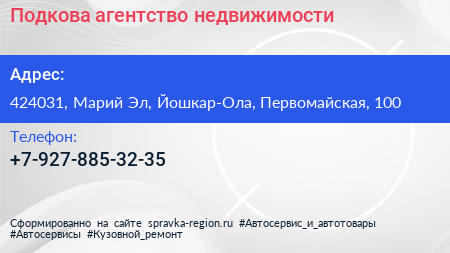 Подкова, агентство недвижимости по адресу 424031, Марий Эл, Йошкар-Ола, Первомайская, 100 в дальнейшем Организация, размещена в следующих категориях: