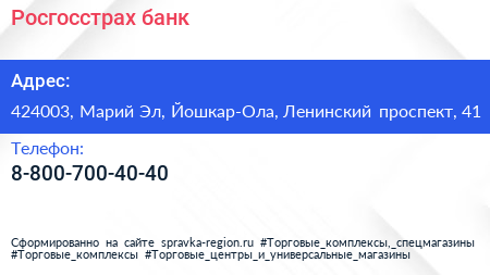 Росгосстрах банк по адресу 424003, Марий Эл, Йошкар-Ола, Ленинский проспект, 41 в дальнейшем Организация, размещена в следующих категориях: