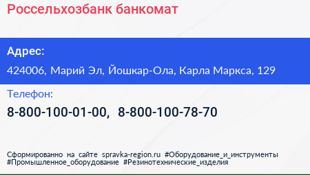 Россельхозбанк, банкомат по адресу 424006, Марий Эл, Йошкар-Ола, Карла Маркса, 129 в дальнейшем Организация, размещена в следующих категориях: