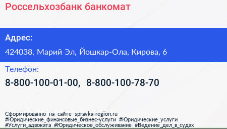 Россельхозбанк, банкомат по адресу 424038, Марий Эл, Йошкар-Ола, Кирова, 6 в дальнейшем Организация, размещена в следующих категориях: