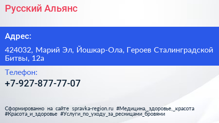 Русский Альянс по адресу 424032, Марий Эл, Йошкар-Ола, Героев Сталинградской Битвы, 12а в дальнейшем Организация, размещена в следующих категориях: