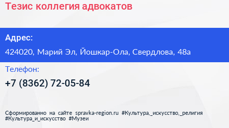Тезис, коллегия адвокатов по адресу 424020, Марий Эл, Йошкар-Ола, Свердлова, 48а в дальнейшем Организация, размещена в следующих категориях: