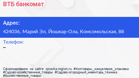 ВТБ, банкомат по адресу 424036, Марий Эл, Йошкар-Ола, Комсомольская, 88 в дальнейшем Организация, размещена в следующих категориях: