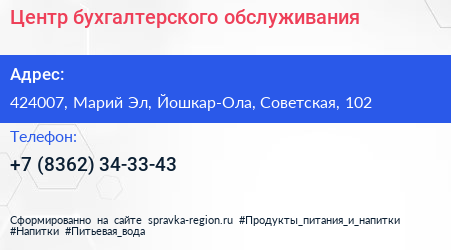 Центр бухгалтерского обслуживания по адресу 424007, Марий Эл, Йошкар-Ола, Советская, 102 в дальнейшем Организация, размещена в следующих категориях: