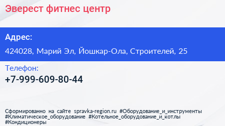 Эверест, фитнес-центр по адресу 424028, Марий Эл, Йошкар-Ола, Строителей, 25 в дальнейшем Организация, размещена в следующих категориях: