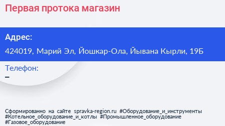 Первая протока, магазин по адресу 424019, Марий Эл, Йошкар-Ола, Йывана Кырли, 19Б в дальнейшем Организация, размещена в следующих категориях: