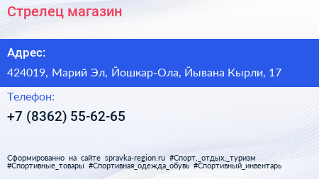 Стрелец, магазин по адресу 424019, Марий Эл, Йошкар-Ола, Йывана Кырли, 17 в дальнейшем Организация, размещена в следующих категориях: