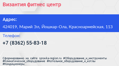 Византия, фитнес-центр по адресу 424019, Марий Эл, Йошкар-Ола, Красноармейская, 113 в дальнейшем Организация, размещена в следующих категориях: