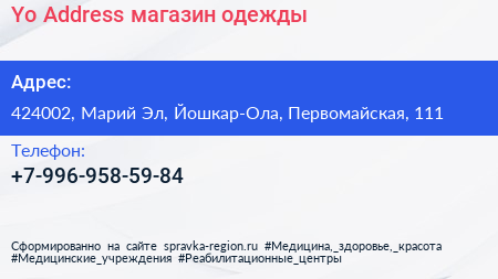 Yo.Address, магазин одежды по адресу 424002, Марий Эл, Йошкар-Ола, Первомайская, 111 в дальнейшем Организация, размещена в следующих категориях: