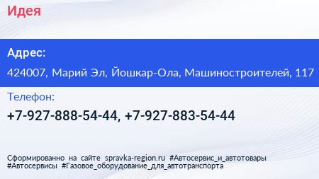Идея по адресу 424007, Марий Эл, Йошкар-Ола, Машиностроителей, 117 в дальнейшем Организация, размещена в следующих категориях:
