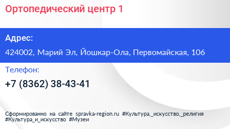 Ортопедический центр №1 по адресу 424002, Марий Эл, Йошкар-Ола, Первомайская, 106 в дальнейшем Организация, размещена в следующих категориях: