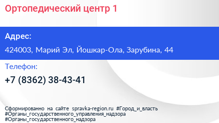 Ортопедический центр №1 по адресу 424003, Марий Эл, Йошкар-Ола, Зарубина, 44 в дальнейшем Организация, размещена в следующих категориях: