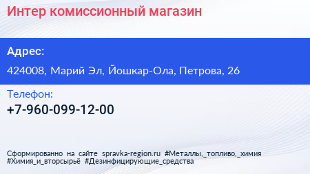 Интер, комиссионный магазин по адресу 424008, Марий Эл, Йошкар-Ола, Петрова, 26 в дальнейшем Организация, размещена в следующих категориях:
