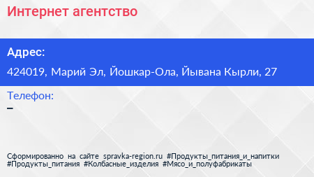 Интернет-агентство по адресу 424019, Марий Эл, Йошкар-Ола, Йывана Кырли, 27 в дальнейшем Организация, размещена в следующих категориях: