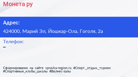 Монета.ру по адресу 424000, Марий Эл, Йошкар-Ола, Гоголя, 2а в дальнейшем Организация, размещена в следующих категориях: