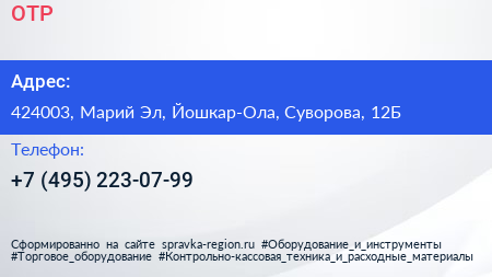 ОТР по адресу 424003, Марий Эл, Йошкар-Ола, Суворова, 12Б в дальнейшем Организация, размещена в следующих категориях: