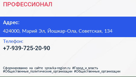 ПРОФЕССИОНАЛ по адресу 424000, Марий Эл, Йошкар-Ола, Советская, 134 в дальнейшем Организация, размещена в следующих категориях: