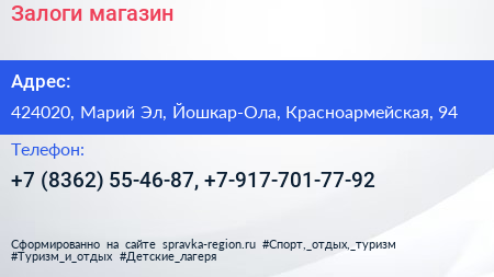 Залоги, магазин по адресу 424020, Марий Эл, Йошкар-Ола, Красноармейская, 94 в дальнейшем Организация, размещена в следующих категориях: