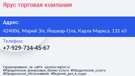 Ярус, торговая компания по адресу 424006, Марий Эл, Йошкар-Ола, Карла Маркса, 131 к3 в дальнейшем Организация, размещена в следующих категориях: