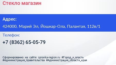 Стекло, магазин по адресу 424000, Марий Эл, Йошкар-Ола, Палантая, 112в/1 в дальнейшем Организация, размещена в следующих категориях: