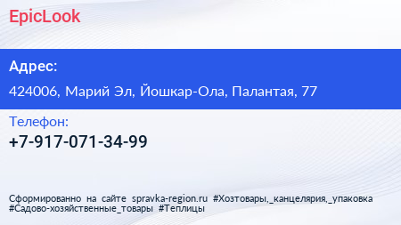 EpicLook по адресу 424006, Марий Эл, Йошкар-Ола, Палантая, 77 в дальнейшем Организация, размещена в следующих категориях: