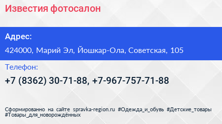 Известия, фотосалон по адресу 424000, Марий Эл, Йошкар-Ола, Советская, 105 в дальнейшем Организация, размещена в следующих категориях: