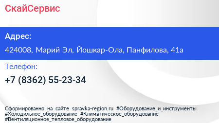 СкайСервис по адресу 424008, Марий Эл, Йошкар-Ола, Панфилова, 41а в дальнейшем Организация, размещена в следующих категориях: