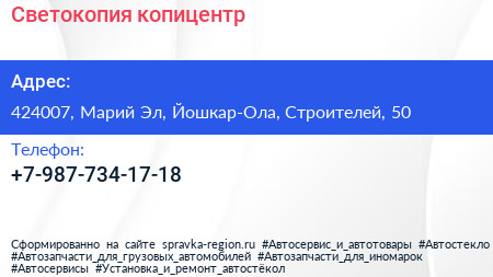 Светокопия, копицентр по адресу 424007, Марий Эл, Йошкар-Ола, Строителей, 50 в дальнейшем Организация, размещена в следующих категориях: