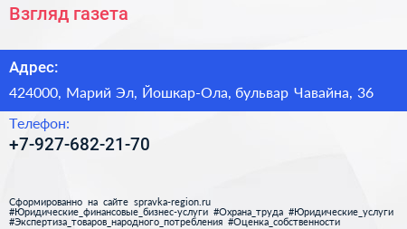Взгляд, газета по адресу 424000, Марий Эл, Йошкар-Ола, бульвар Чавайна, 36 в дальнейшем Организация, размещена в следующих категориях: