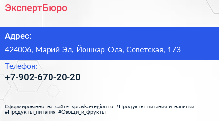 ЭкспертБюро по адресу 424006, Марий Эл, Йошкар-Ола, Советская, 173 в дальнейшем Организация, размещена в следующих категориях: