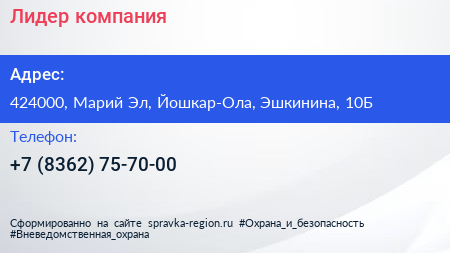 Лидер, компания по адресу 424000, Марий Эл, Йошкар-Ола, Эшкинина, 10Б в дальнейшем Организация, размещена в следующих категориях: