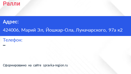 Ралли по адресу 424006, Марий Эл, Йошкар-Ола, Луначарского, 97а к2 в дальнейшем Организация, размещена в следующих категориях: