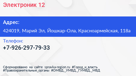 Электроник 12 по адресу 424019, Марий Эл, Йошкар-Ола, Красноармейская, 118а в дальнейшем Организация, размещена в следующих категориях: