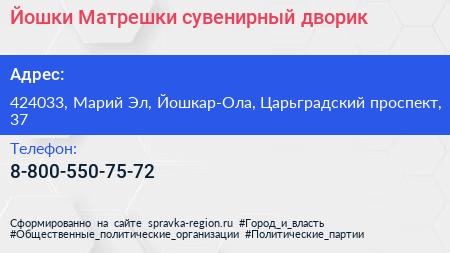 Йошки-Матрешки, сувенирный дворик по адресу 424033, Марий Эл, Йошкар-Ола, Царьградский проспект, 37 в дальнейшем Организация, размещена в следующих категориях: