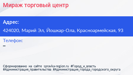 Мираж, торговый центр по адресу 424020, Марий Эл, Йошкар-Ола, Красноармейская, 93 в дальнейшем Организация, размещена в следующих категориях:
