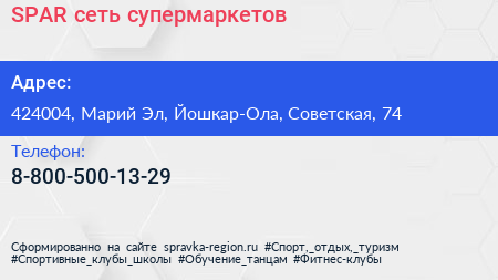 SPAR, сеть супермаркетов по адресу 424004, Марий Эл, Йошкар-Ола, Советская, 74 в дальнейшем Организация, размещена в следующих категориях: