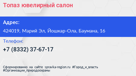 Топаз, ювелирный салон по адресу 424019, Марий Эл, Йошкар-Ола, Баумана, 16 в дальнейшем Организация, размещена в следующих категориях: