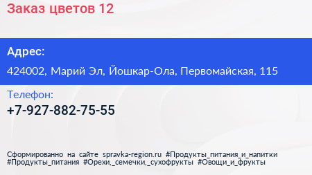 Заказ цветов 12 по адресу 424002, Марий Эл, Йошкар-Ола, Первомайская, 115 в дальнейшем Организация, размещена в следующих категориях: